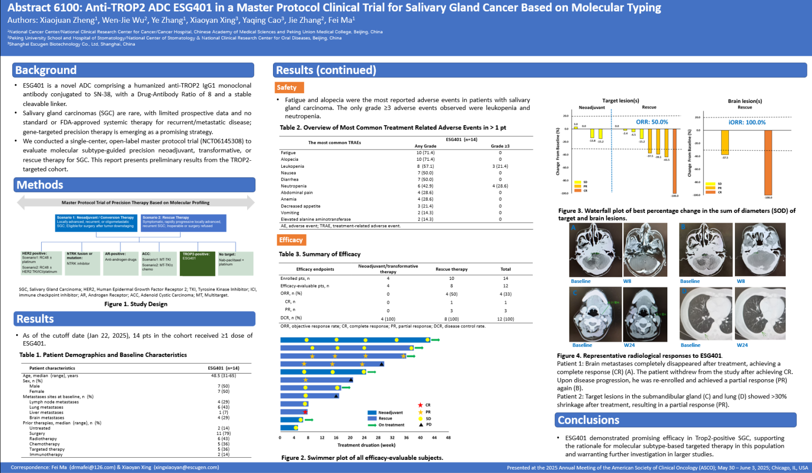 2025年6月2日,詩健生物ESG401(Trop2 ADC)在2025年ASCO會議上以Poster形式首次報告了ESG401在唾液腺癌中臨床試驗研究數據。