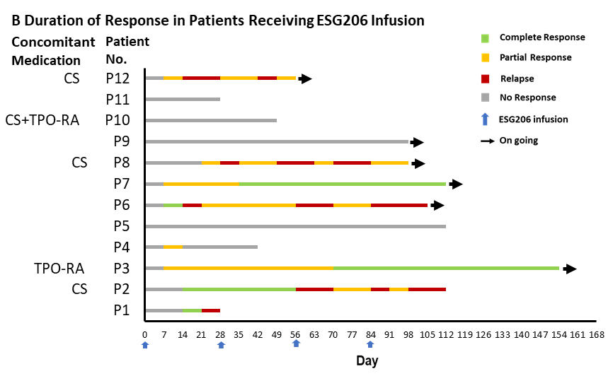 圖1. ESG206輸注后的血小板計(jì)數(shù)變化與緩解持續(xù)時(shí)間