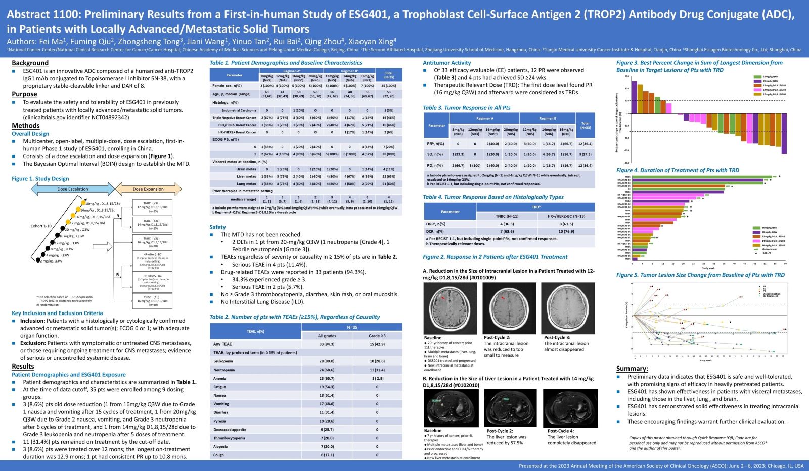 2023年6月4日,詩(shī)健生物ESG401(Trop2 ADC)在2023年ASCO會(huì)議上以Poster形式閃亮登場(chǎng),報(bào)告了在首次人體研究中獲得的初步研究數(shù)據(jù)。