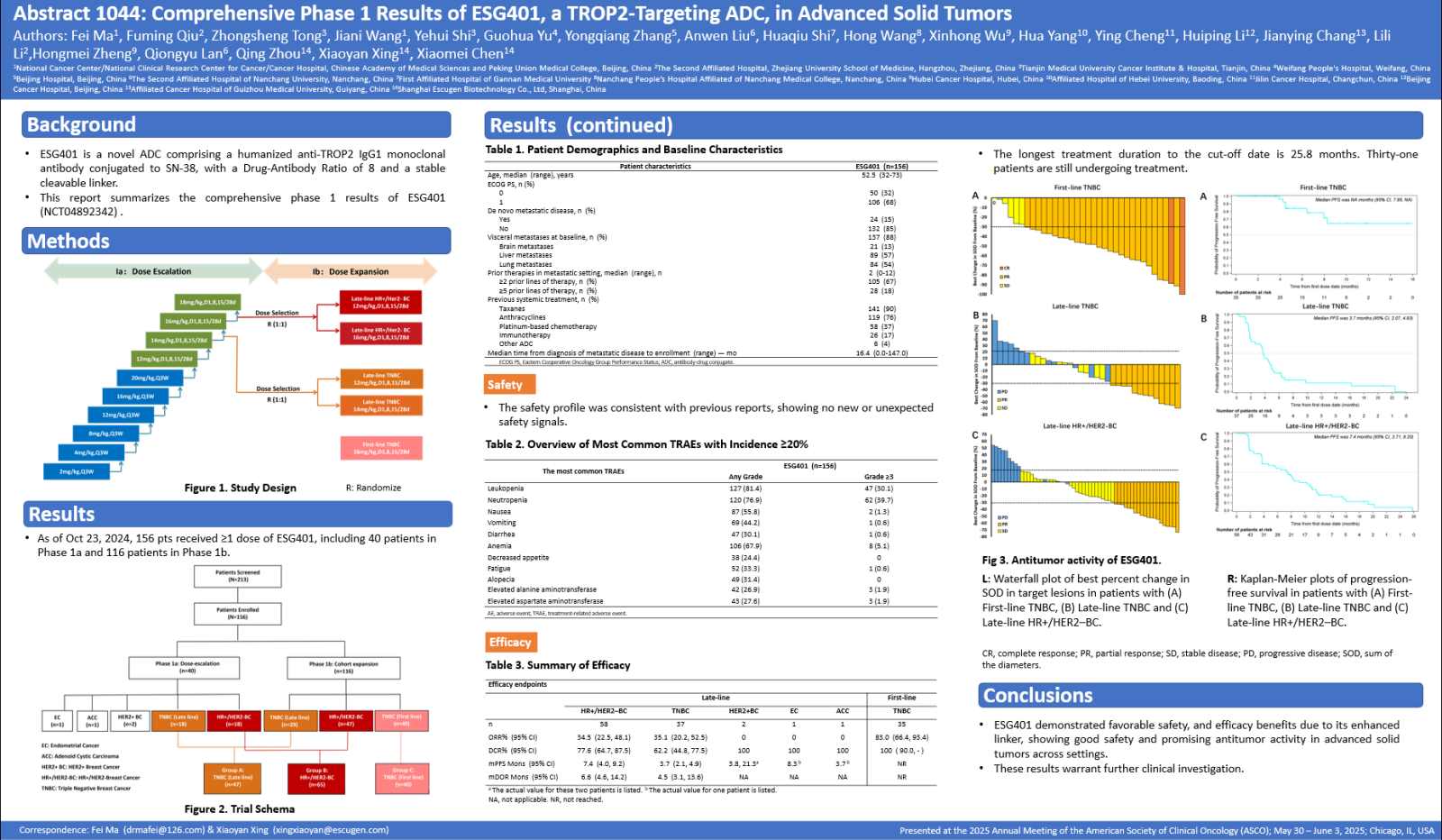 研究題目:Comprehensive Phase 1 Results of ESG401, a TROP2-Targeting ADC, in Advanced Solid Tumors.